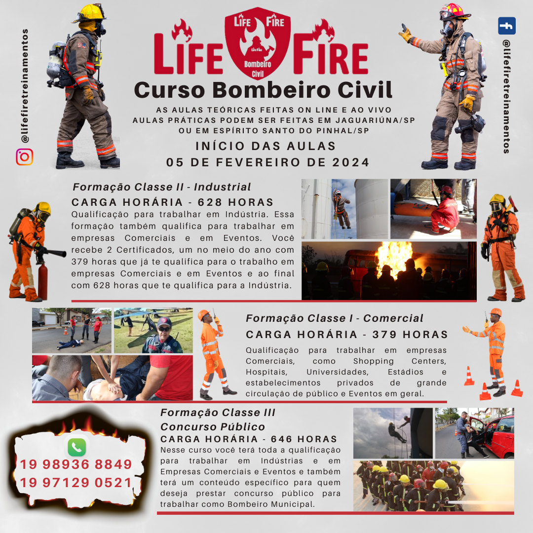 - Bombeiro Profissional Civil Classe III - 646 horas qualifica para concursos públicos (também qualifica para Indústrias, Eventos e Comércios)